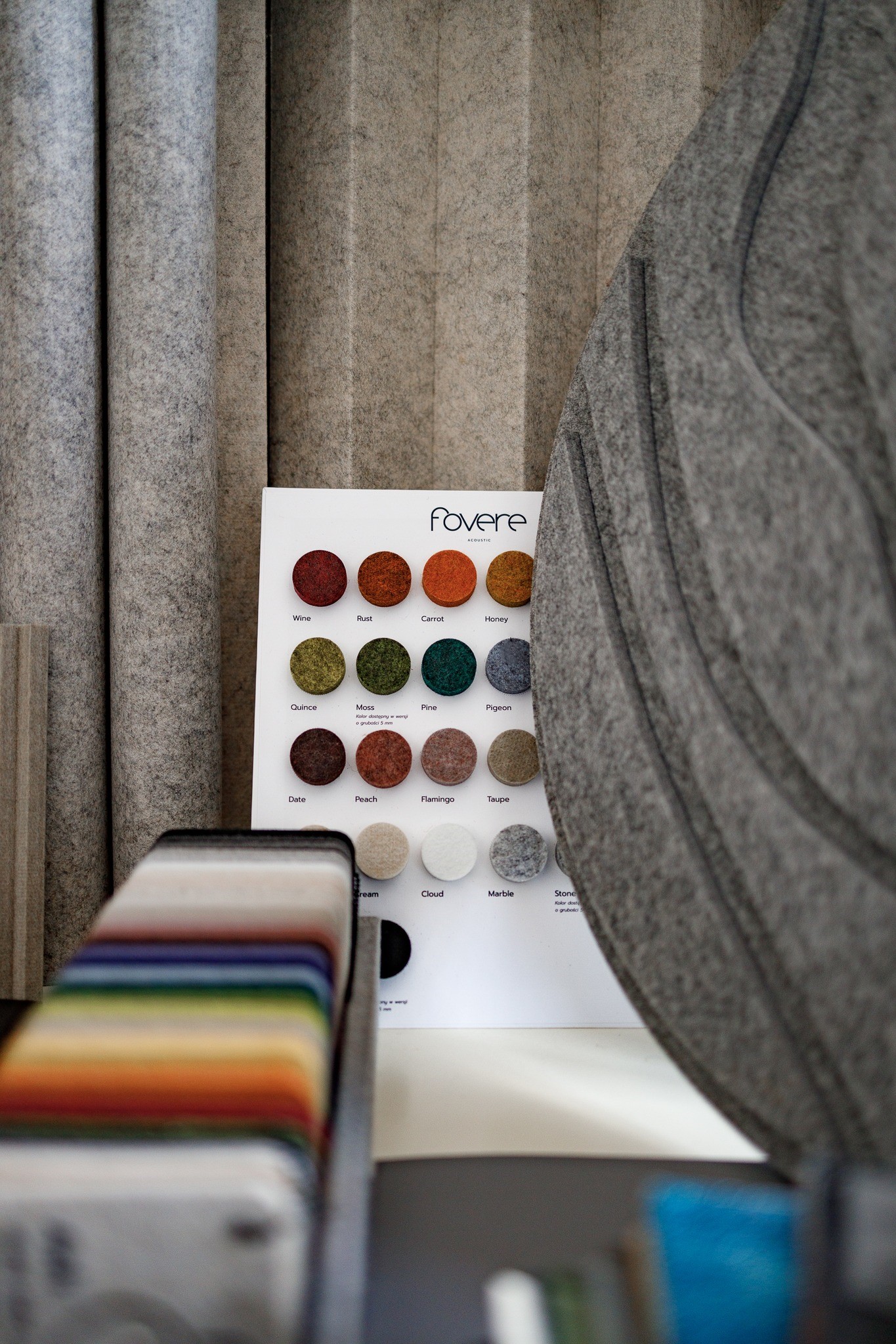 Tworząc markę filców akustycznych Fovere chcieliśmy, aby ta miękkość i przytulność miała solidną podbudowę w jakości, perfekcji wytwarzania, ekologii. Udało się, ponieważ filary firmy tworzą osoby wywodzące się ze świata biznesu i finansów, z dużym doświadczeniem w wyposażaniu wnętrz komercyjnych.